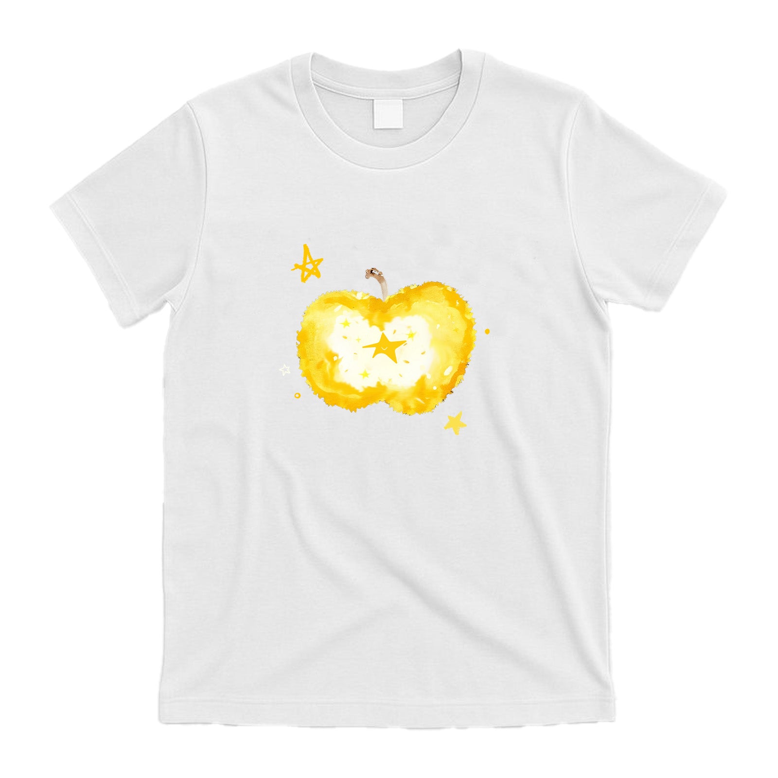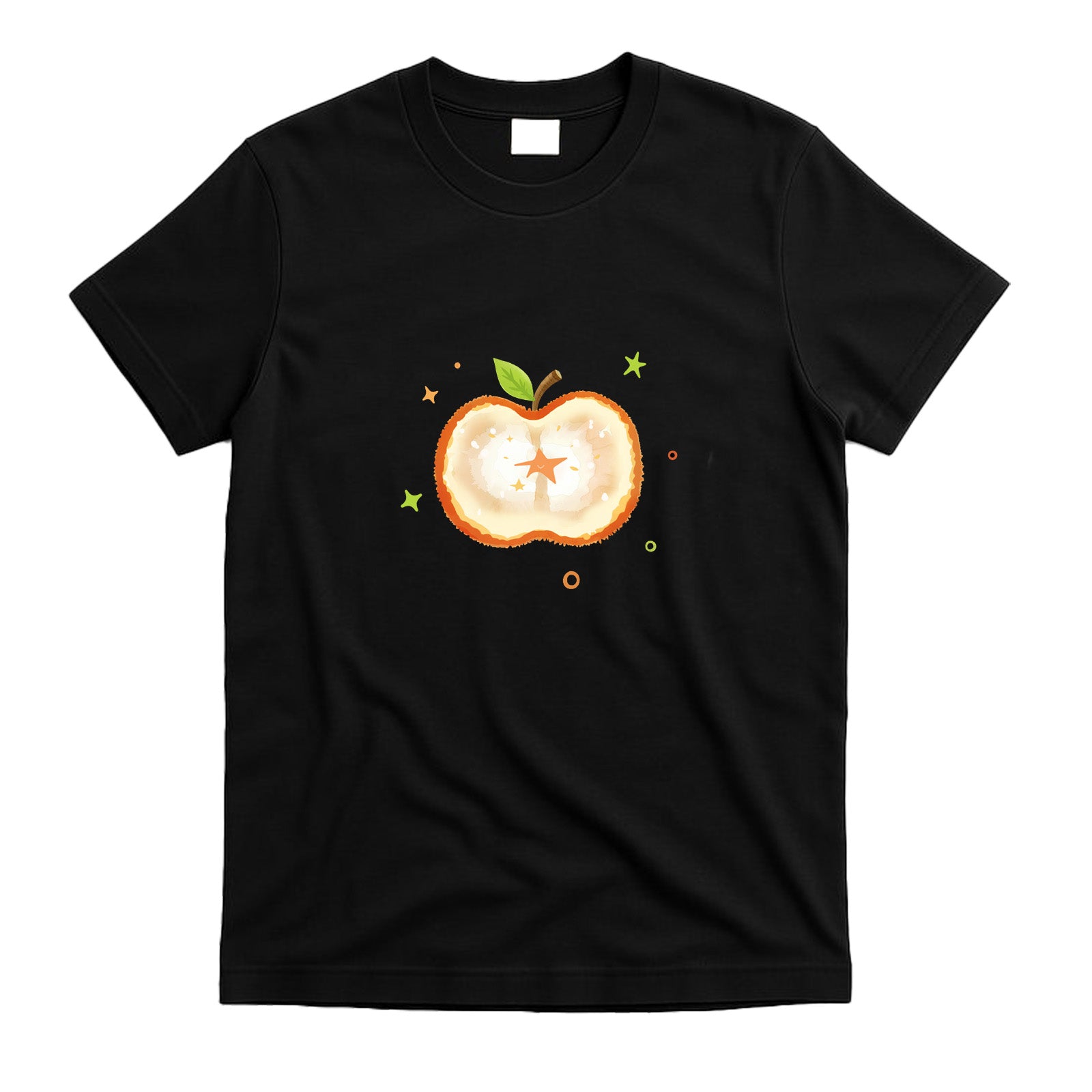 Camiseta gráfica de manzana con estrella incrustada (blanco y negro): camiseta informal de manga corta, artística y de ensueño