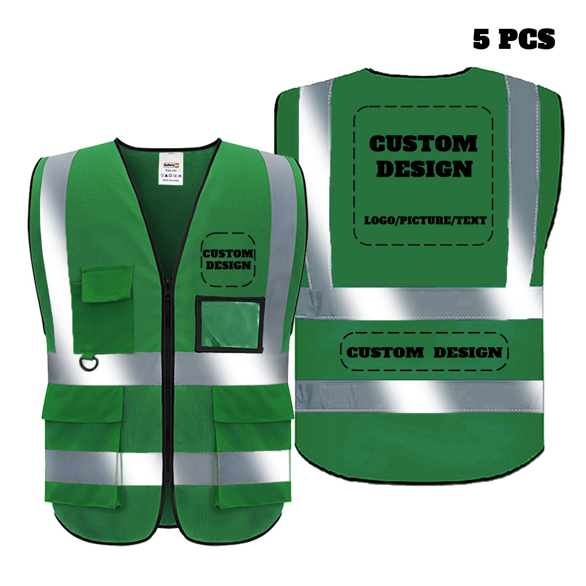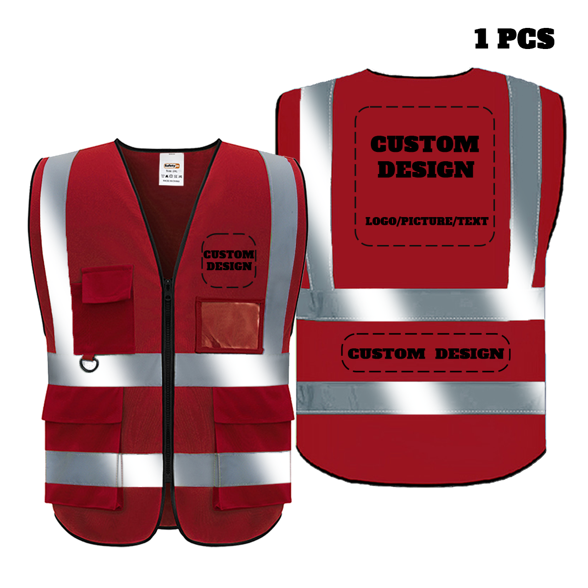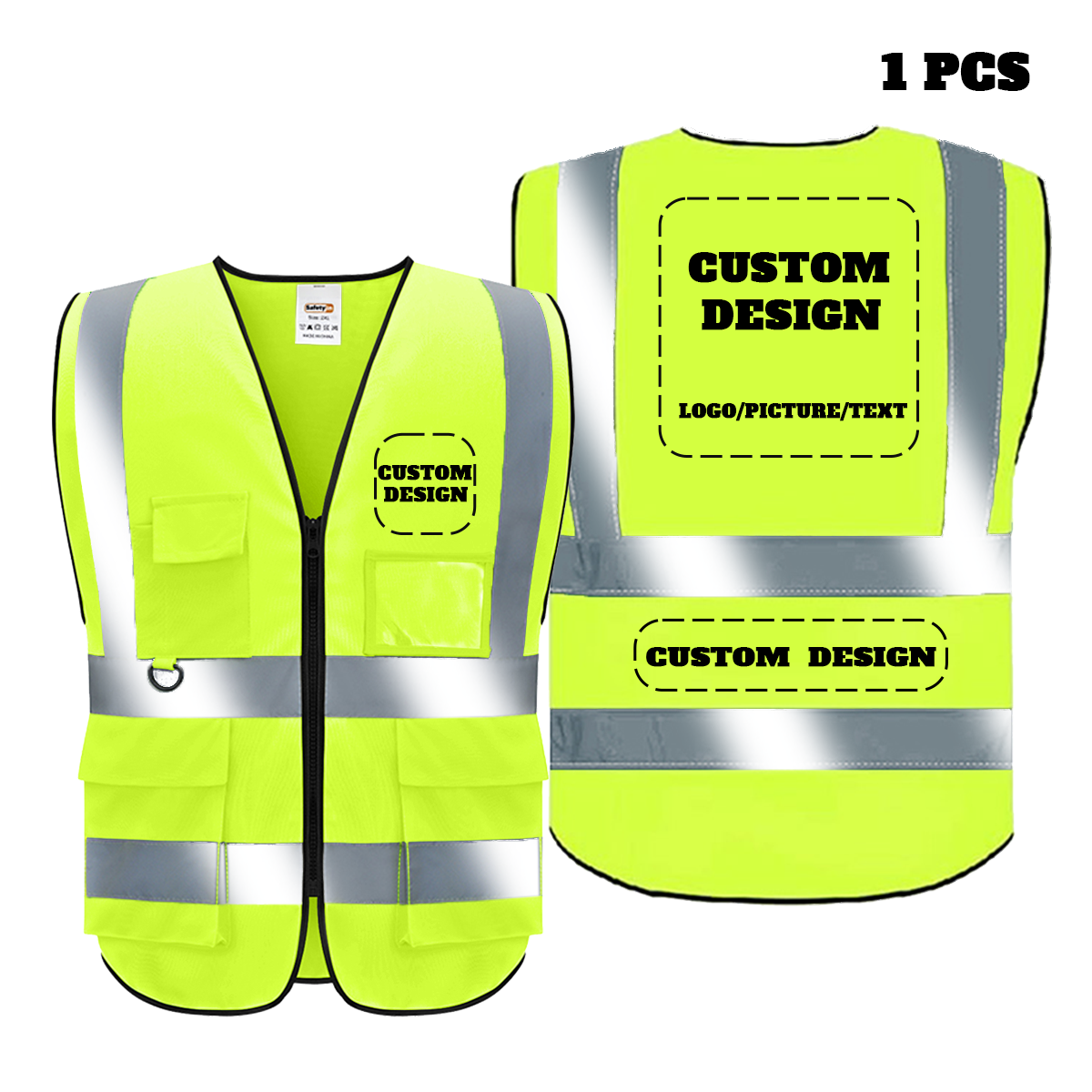 Custom Safety Vest Customized Logo Class 2 High Visibility Reflective Vest with 5 Pockets and Zipper Construction Workwear