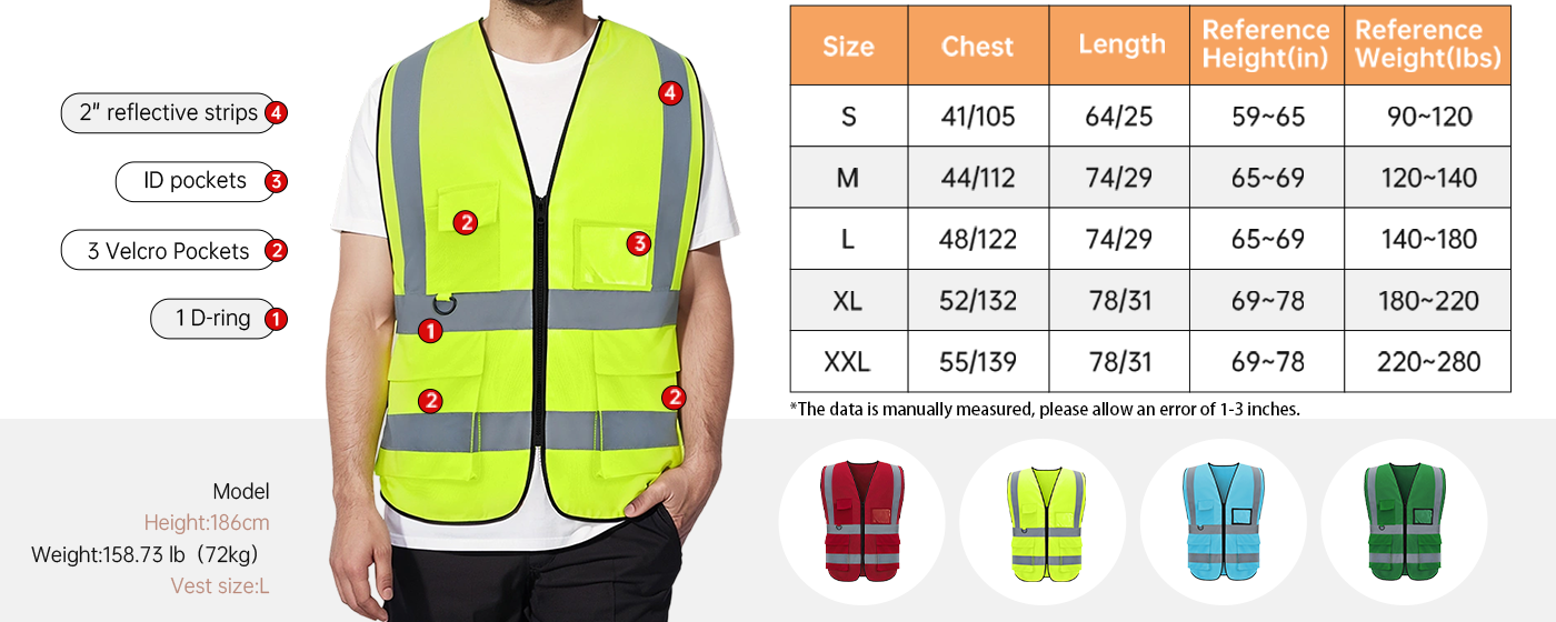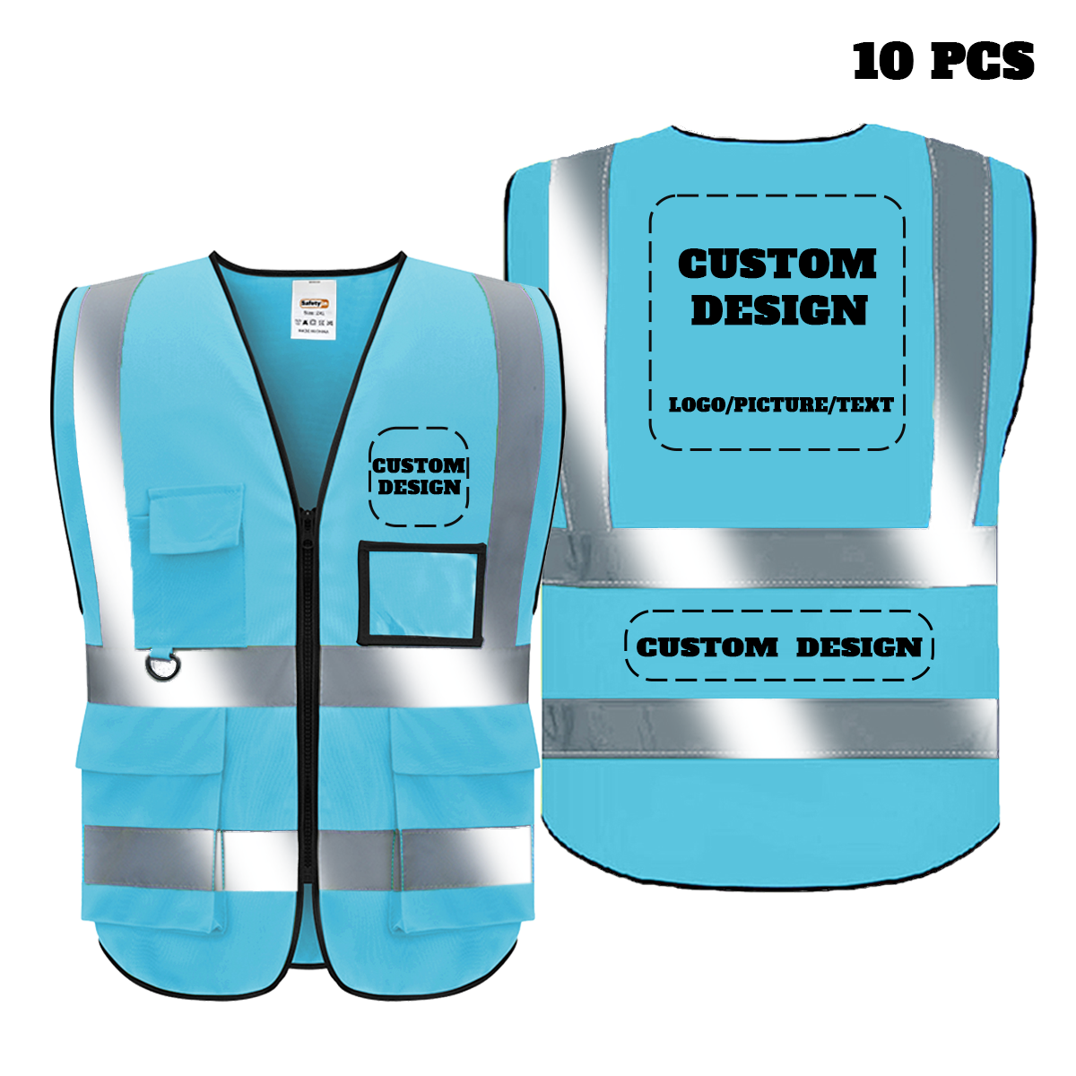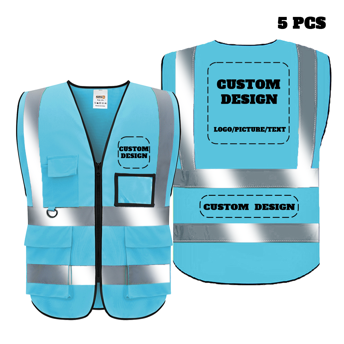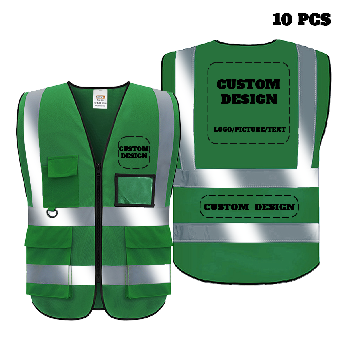 Custom Safety Vest Customized Logo Class 2 High Visibility Reflective Vest with 5 Pockets and Zipper Construction Workwear