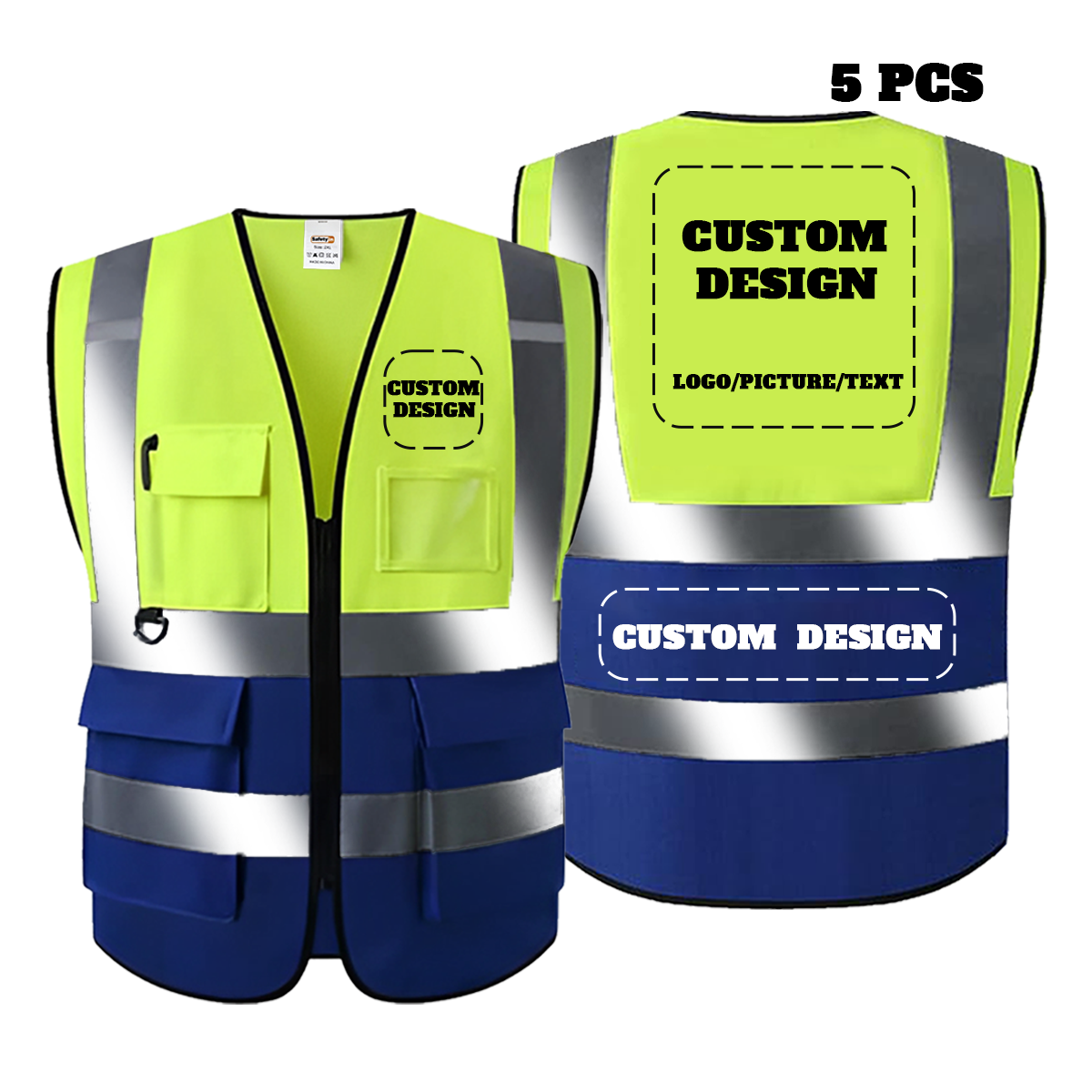 Custom Your Logo Safety Vest Custom Your Own in Hi Vis Reflective Vest High Visibility Work Wear with Zipper & 5 Pockets