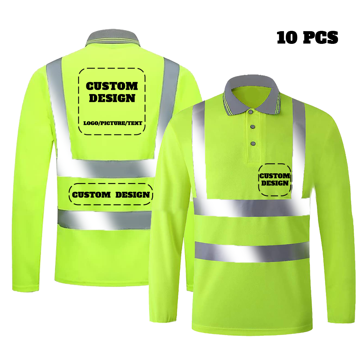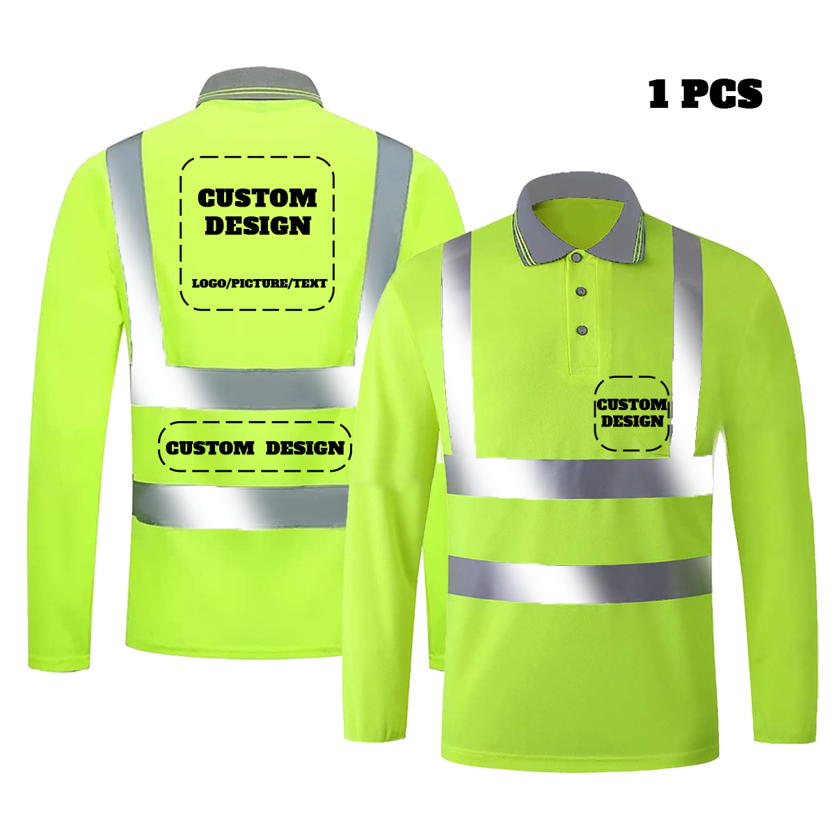 Customizable LOGO Polo Shirt Long Sleeve Personalized Class 2 hi vis T-Shirt High VIsibility Reflective Polo Workwear