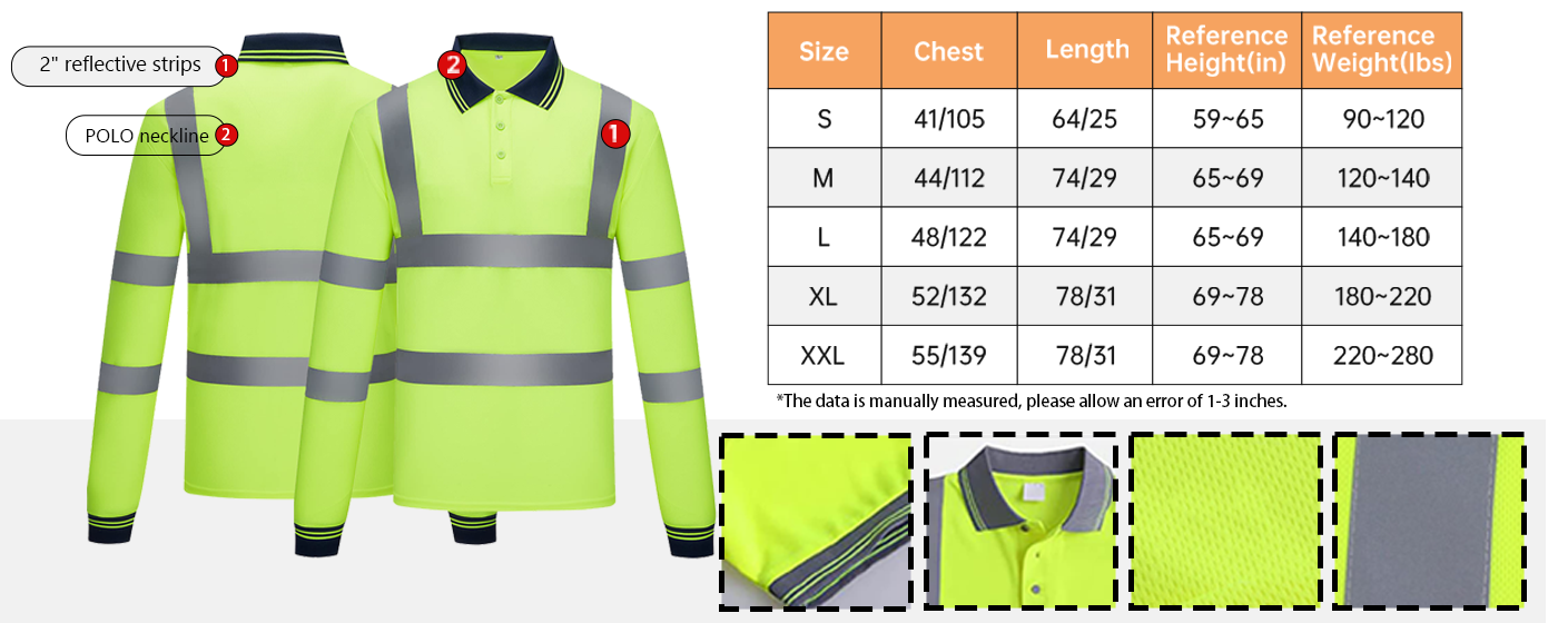Customized POLO Shirt High VIsibility Long Sleeve Class 3 Reflecive Strips Men'Work Utility Print Your T-Shirt