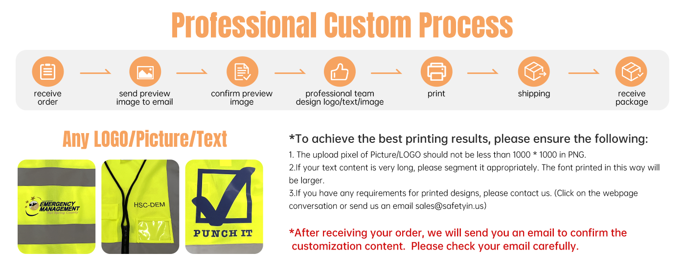 Safety Vest Custom LOGO with 7 Pockets & Zipper Personalize Reflective High Visibility Vest Class 2 Outdoor Workwear