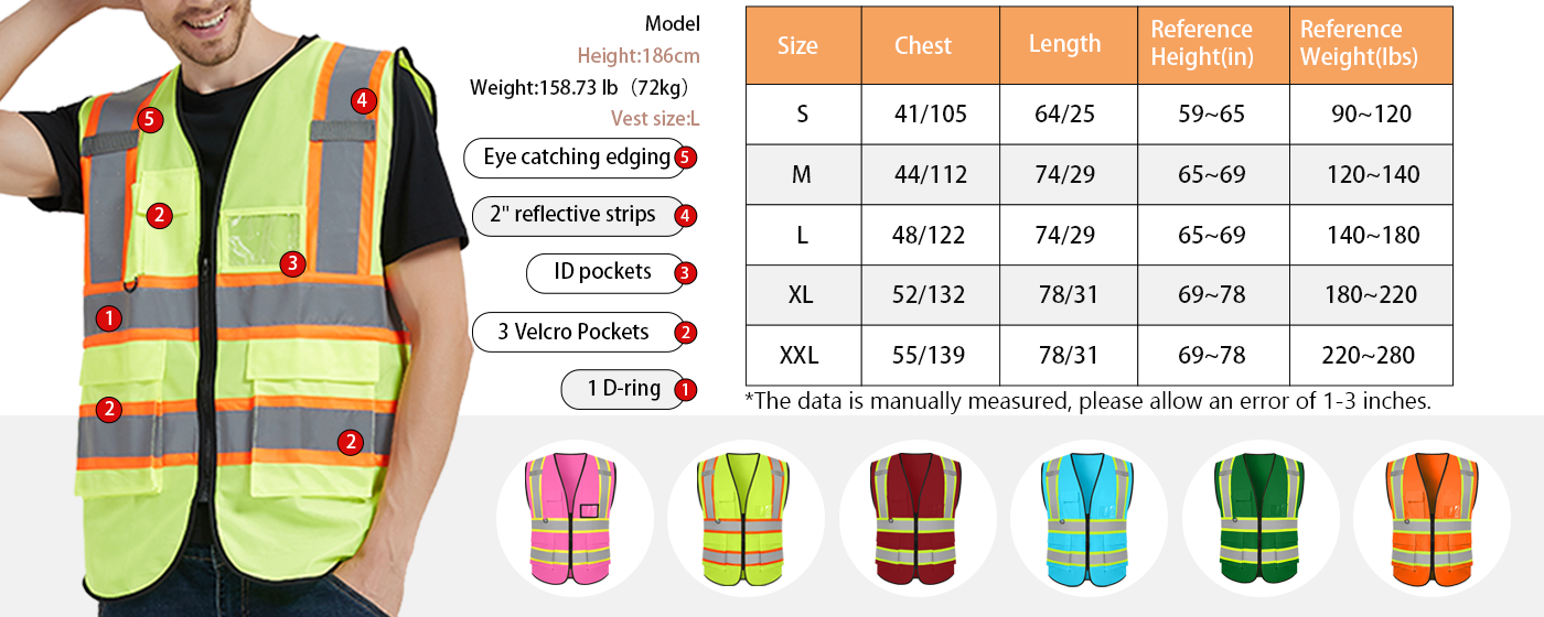 Custom Safety Vest with LOGO High Visibility Reflective with 5 Pockets & Zipper Class 2 Adult Unisex Construction Workwear