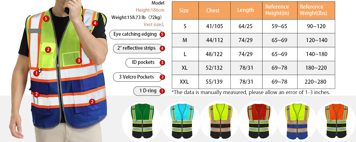 Customizable LOGO Mesh Safety Vest Class 2 High Visibility Reflective Vest with Pockets and Zipper 2 Color with Eye-Catching Edging Protective Vest